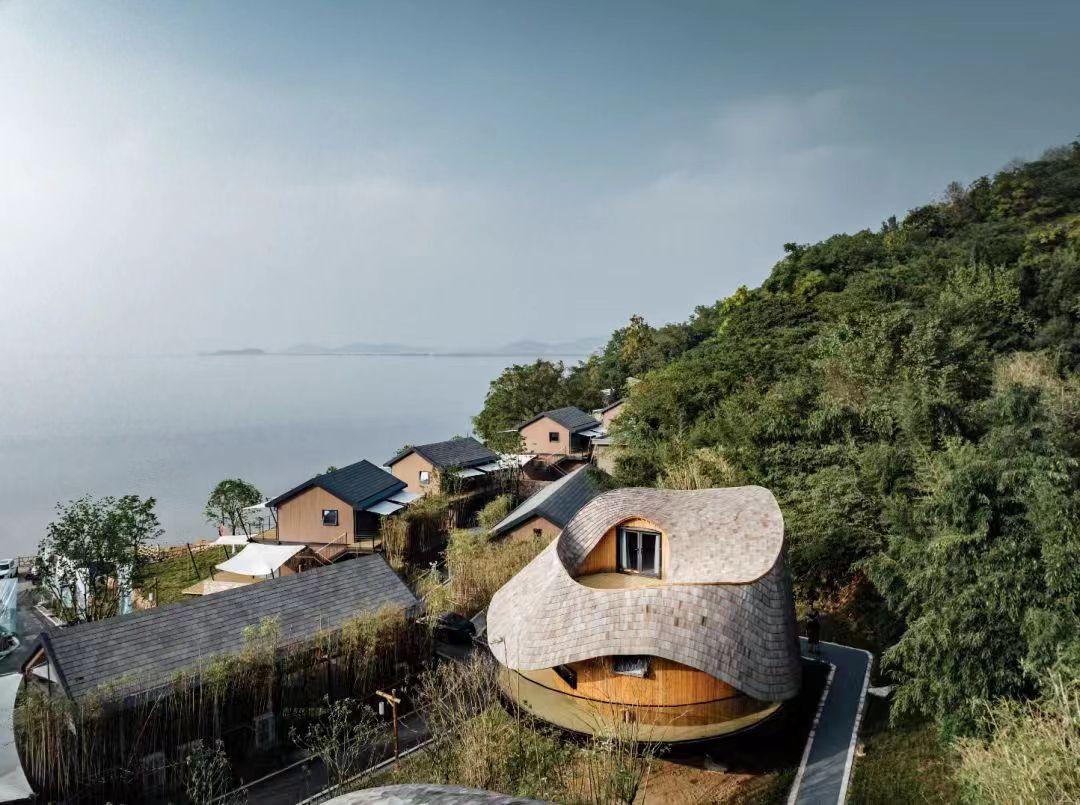 三角樹屋、 鳥巢屋、荷葉樹屋……走進度假區,一棟棟個性十足的客房讓人眼前一亮。