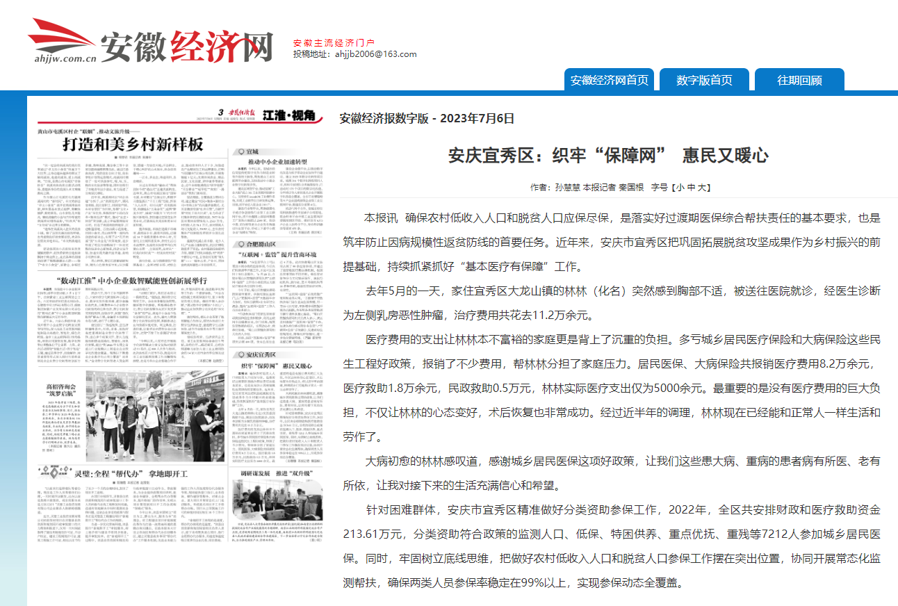 【安徽經(jīng)濟(jì)報(bào)】安慶宜秀區(qū):織牢“保障網(wǎng)” 惠民又暖心