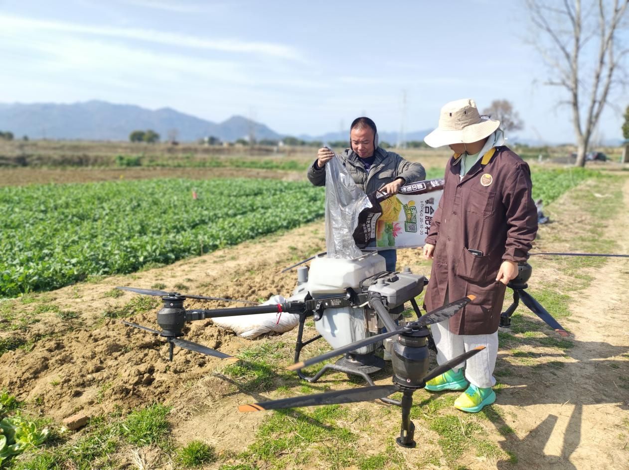 據悉,目前正是小麥施肥時節,為進一步提高農業生產效率,助力糧食種植節本增效、豐產增收,該社區種糧大戶利用無人機進行麥田施肥作業。