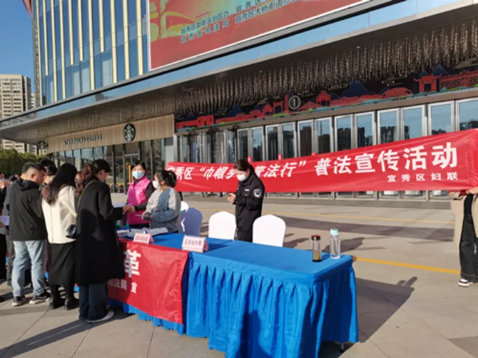 12月2日下午,區婦聯聯合大橋街道婦聯在弘陽廣場開展“巾幗鄉村普法行”普法宣傳活動。