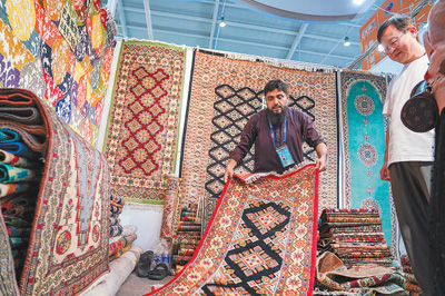 印度的手工藝品、巴基斯坦的紡織品、斯里蘭卡的紅茶、尼泊爾的羊絨披肩、阿富汗的手工地毯……走進南亞館,各國特色商品、展品琳瑯滿目,濃郁的異域風情撲面而來。
