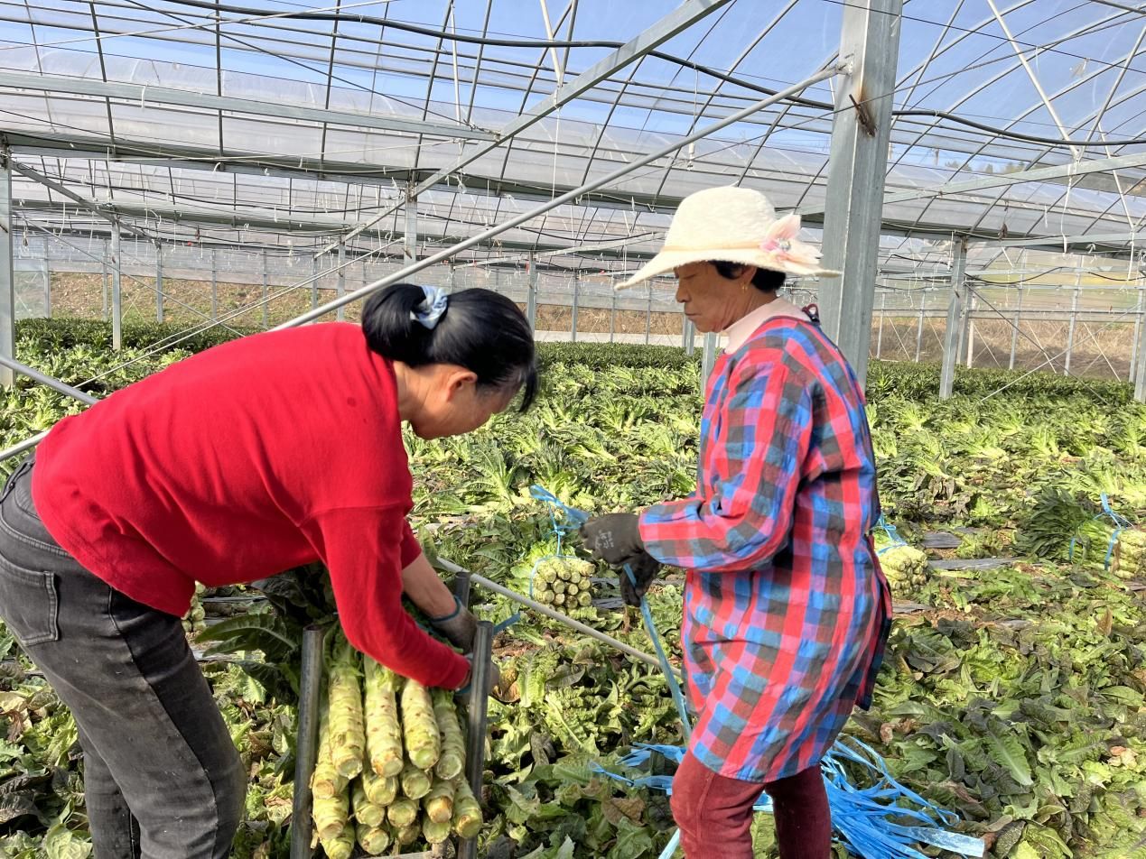 春日,在羅嶺鎮鳳溪社區蔬菜大棚內,一株株萵苣翠綠挺拔,農戶們在棚間穿梭,忙著采摘、挑選、打包,新采摘的萵苣“坐”上了發往周邊城市的貨車,一幅繁忙熱鬧的豐收景象呈現在眼前。