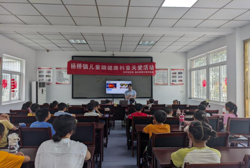 孩子是祖國的未來,一雙明亮的眼睛是他們放眼世界的窗口。保護每一個孩子的視力是學校、家庭、社會義不容辭的責任。為切實加強學生視力保護工作,構筑學生預防近視、保護視力的防線,普及科學用眼的知識,增強學生的護眼意識,7月17日,楊橋鎮團委聯合施漢彬愛爾眼科醫院開展兒童眼健康科普關愛活動。走進楊橋鎮“宜童享未來”暑期課堂為學生開展眼健康科普知識講座。來自施漢彬愛爾眼科醫院的王醫生從眼球的結構、近視眼的產生和危害以及如何保護眼視力給孩子們上了一堂生動的眼健康科普課。課堂上同學們認真聽講,積極舉手回答問題,王醫生也耐心地為同學們答疑解惑,倡導同學們要注意生活、學習的小細節,避免傷害眼睛,用科學的方法保護眼睛,預防近視發生。