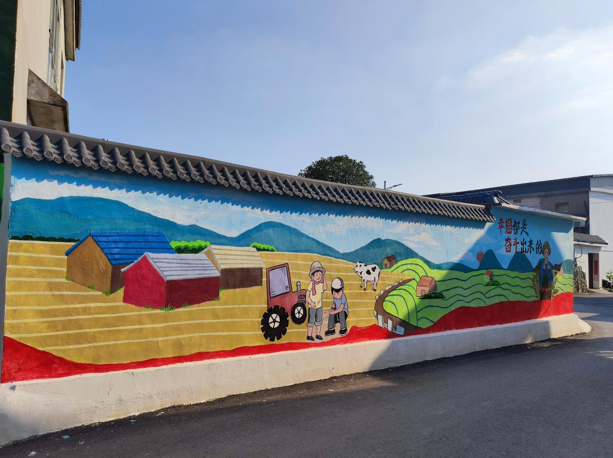 一墻一文化,一畫一風景。以墻為紙,畫美麗鄉村,當一面面白墻被涂上顏料,變身多彩墻繪,文明之風也隨之走進村民的生活。
